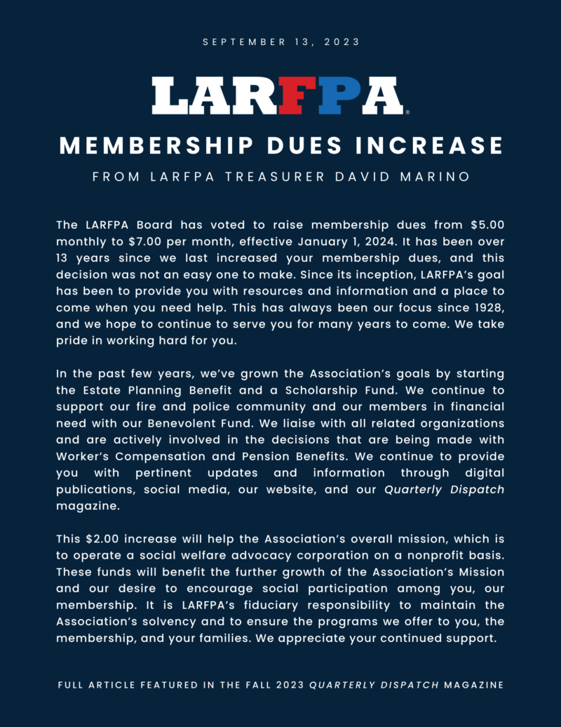 The Benevolent Association obtains resources to administer temporary financial assistance to pensioners of the Los Angeles Fire Department and the Los Angeles Police Department, their spouses, widows and widowers, and dependent parents. We have no sponsored programs.