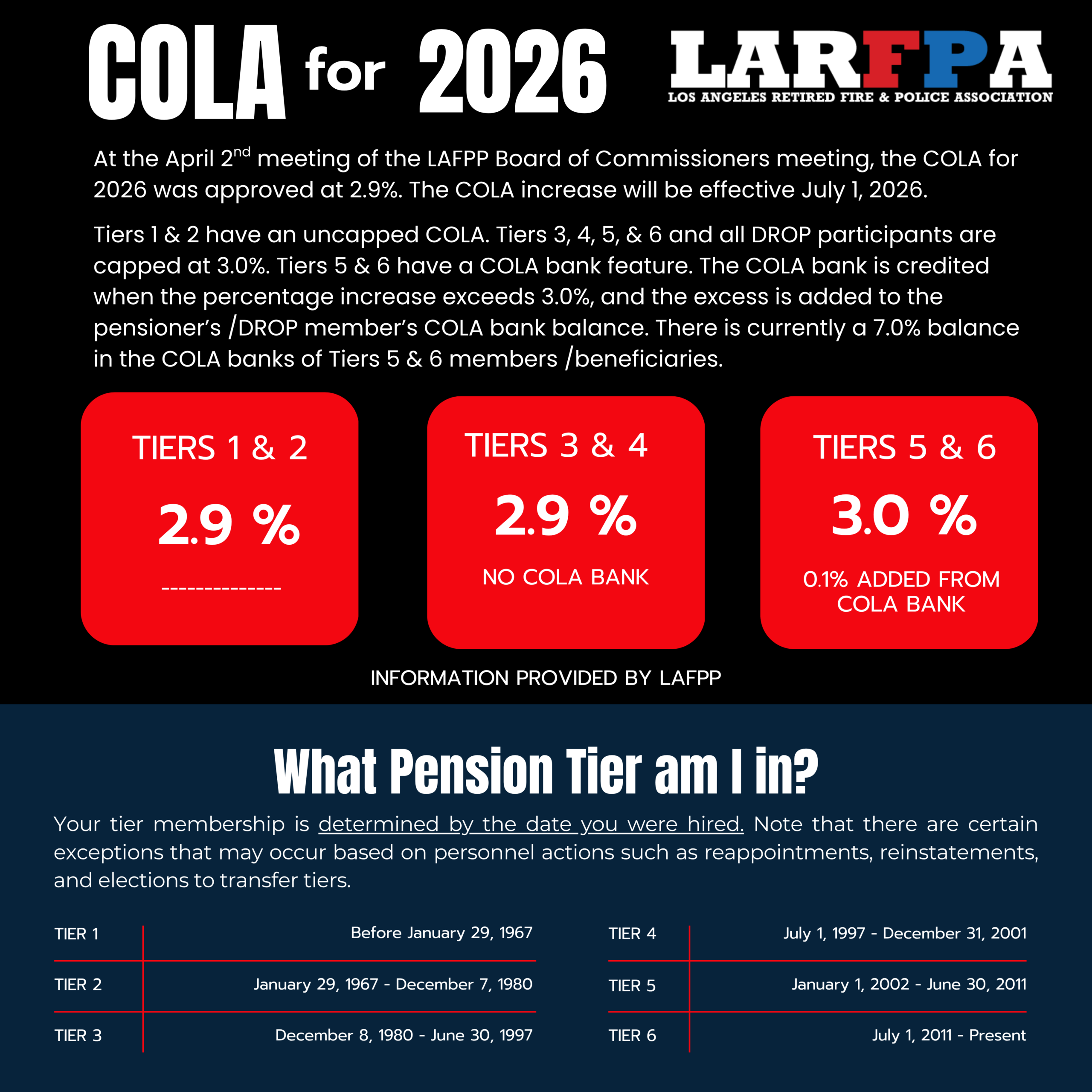 LAFPP ANNOUNCES COLA FOR 2026 Gallery LAFPP ANNOUNCES COLA FOR 2026 Headlines & Updates, News LAFPP ANNOUNCES COLA FOR 2026larfpa2026-04-03T12:48:17-07:00April 3, 2026|Headlines & Updates, News|Read More